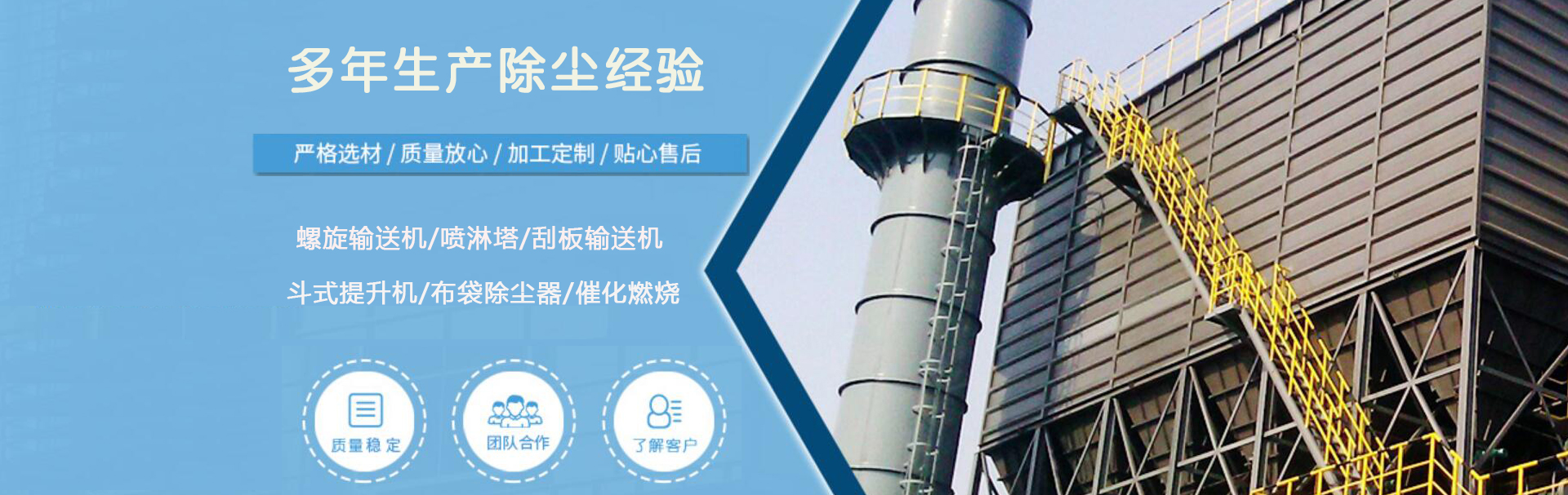 查看詳情+集科研、生產(chǎn)、加工、銷售為一體的企業(yè),自創(chuàng)建以來,嚴(yán)抓產(chǎn)品質(zhì)量,公司各種設(shè)備齊全,技術(shù)力量雄厚,是生產(chǎn)各種類型除塵設(shè)備及配件的廠家,產(chǎn)品主要有:布袋除塵器,螺旋輸送機(jī)噴淋塔,刮板輸送機(jī),斗式提升機(jī),催化燃燒。 始終堅持“以市場為導(dǎo)向、產(chǎn)學(xué)研相結(jié)合”的指導(dǎo)思想, 持續(xù)開展技術(shù)創(chuàng)新,不斷提高企業(yè)核心競爭力。